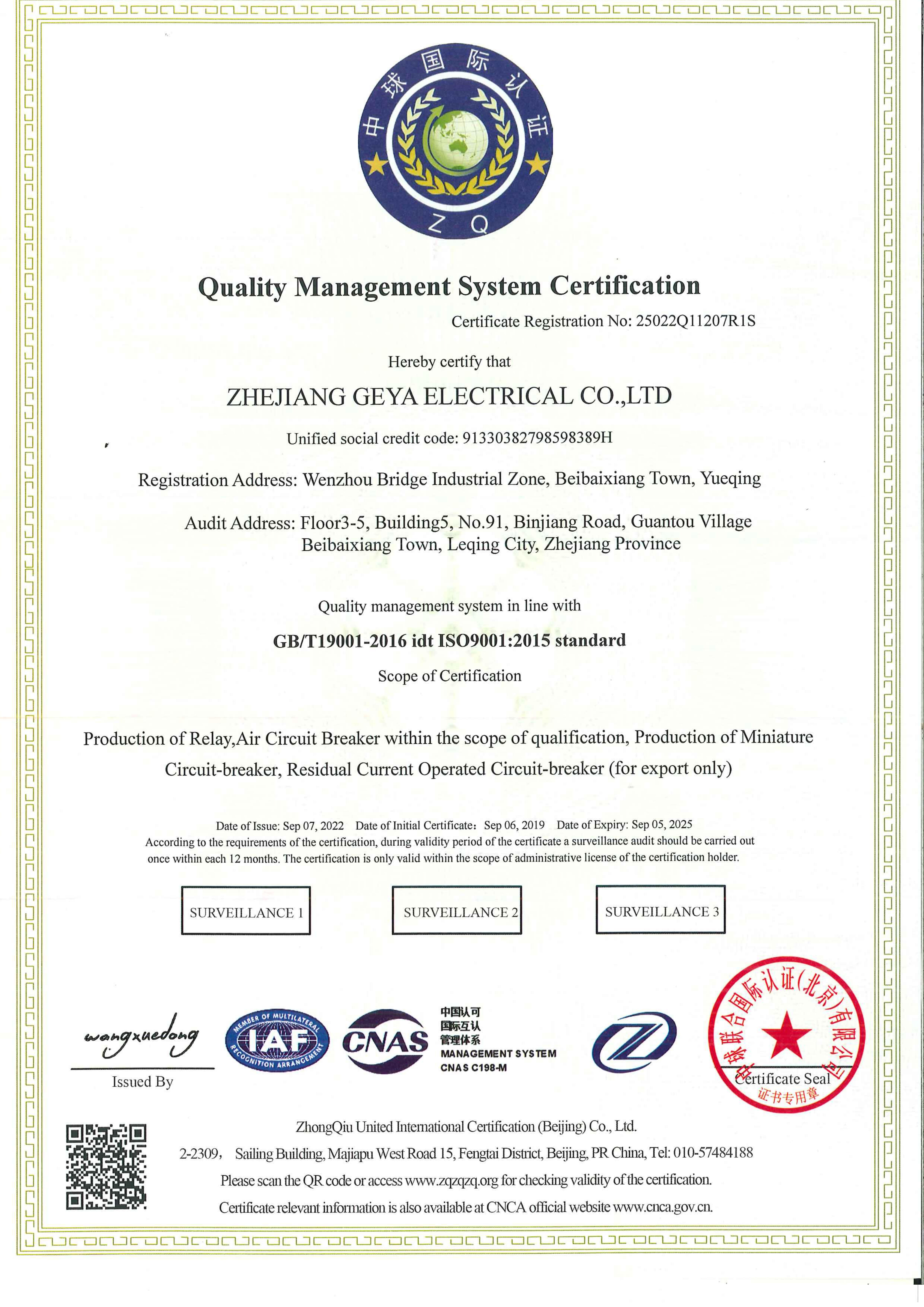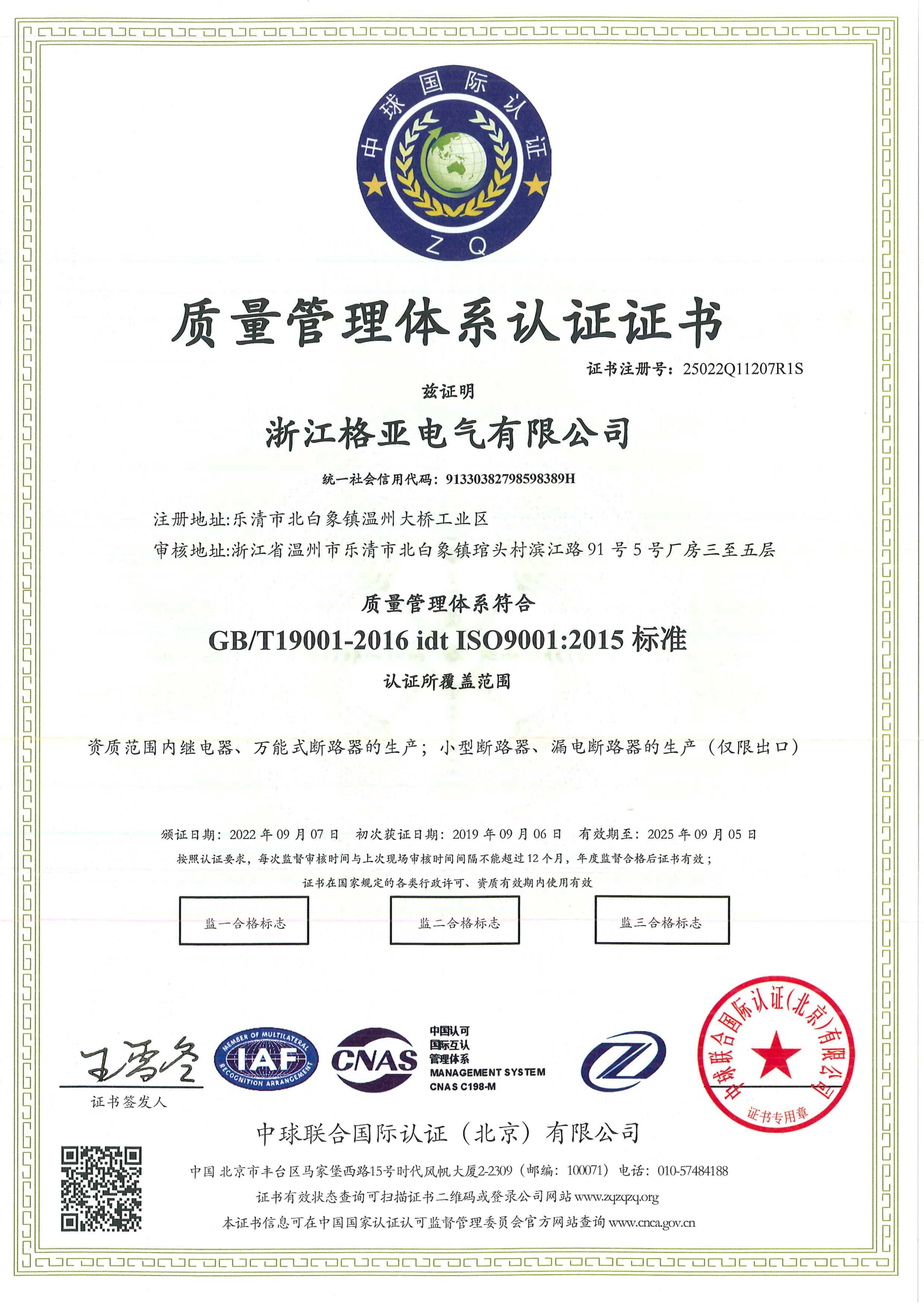 格亞ISO9001證書-中文