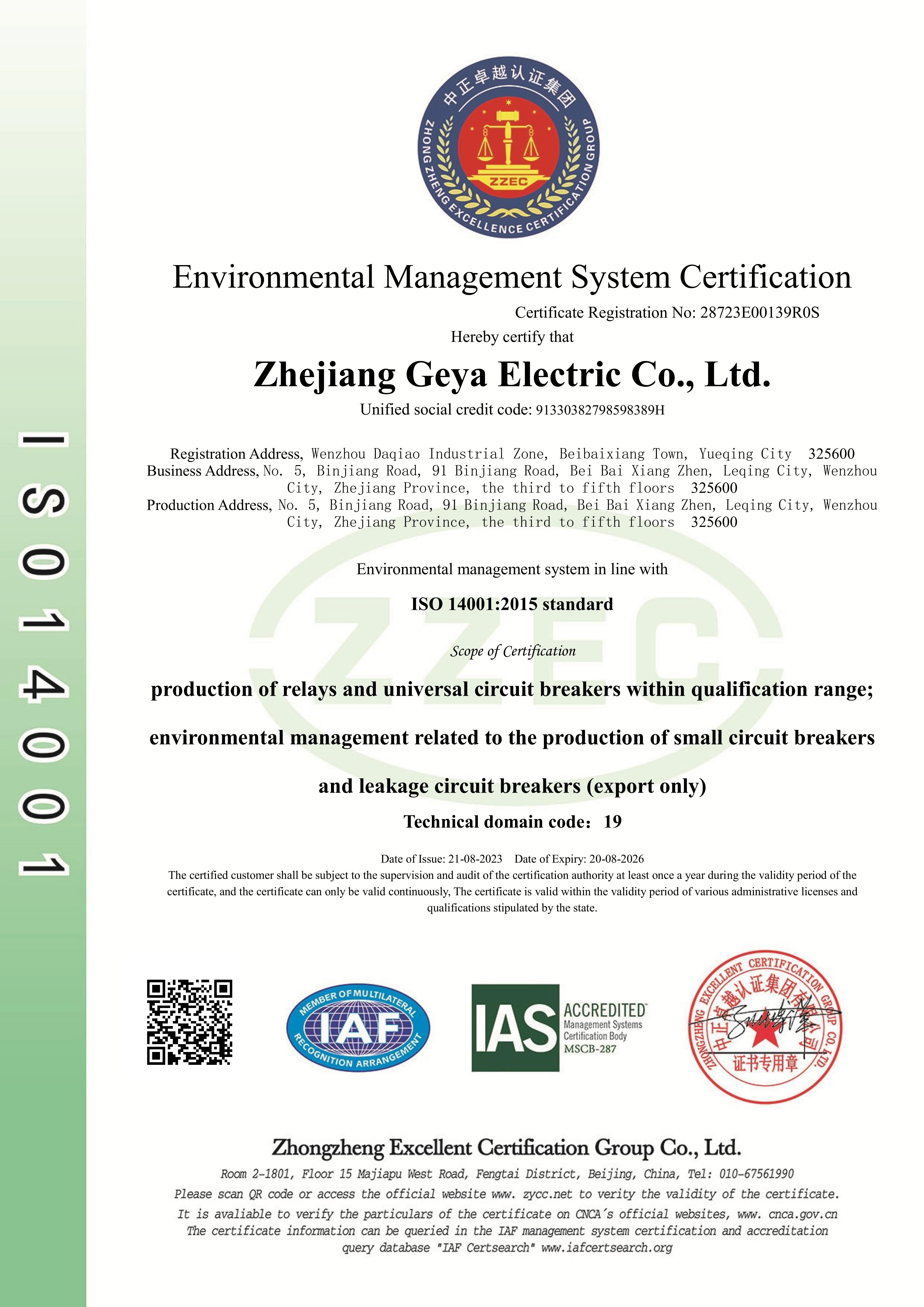 ISO14001 環(huán)境管理體系證書 中文