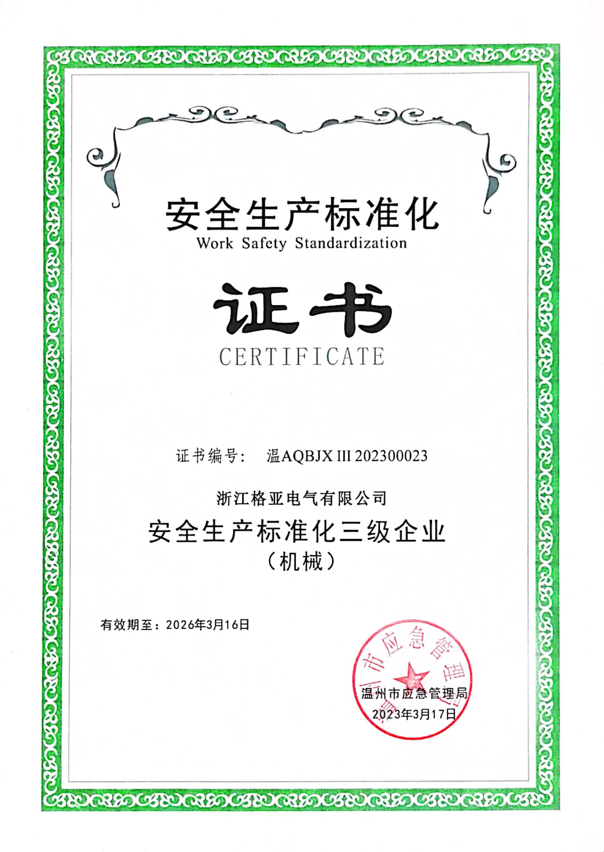 安全生產(chǎn)標準化證書