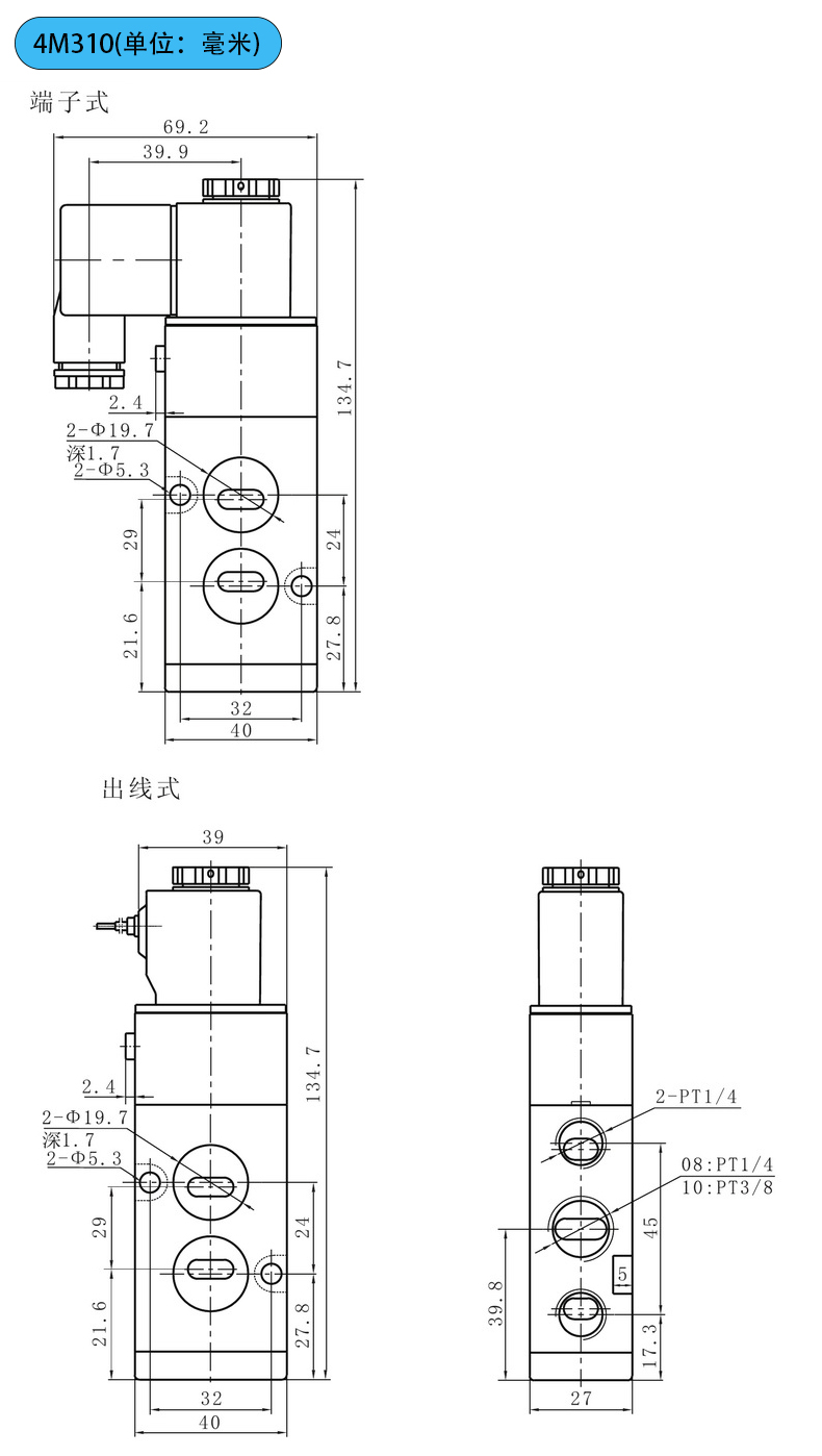 4M系列氣動(dòng)電磁閥產(chǎn)品尺寸: